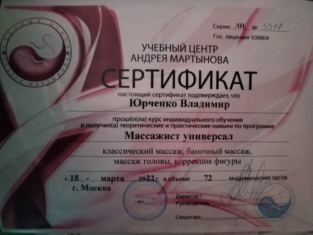 Специалист Ольга Николаевна Голубева работает как массажист. Улучшить самочувствие можно разными способами, и массаж - один из наиболее приятных. При помощи различных техник, таких, как антицеллюлитный, аппаратный, балийский, баночный, локальный, висцеральный, восстановительный, восточный, вьетнамский, гавайский, даосский, египетский, испанский, китайский, корректирующий, креольский, общий, расслабляющий, рефлекторно-сегментарный, спортивный, тайский, тибетский, турецкий, медовый, миофасциальный, нейроседативный, спа, тонизирующий, японский массаж, массаж стоп, рук, спины, лица, ног, головы, шейно-воротниковой зоны, массаж по Ахабадзе, Шиацу-массаж, массаж гуаша, стоун-массаж, массаж в четыре руки, а также выполняя массаж для беременных, специалист сможет привести в тонус уставшие мышцы или, наоборот, расслабить слишком напряженные участки тела. Ольга Николаевна Голубева как профессиональный массажист поможет вам оставаться в форме. Воздействуя на активные зоны, она стимулирует приток крови в организме, что плодотворно влияет на работу многих систем. На сеансе вам предоставится возможность не просто укрепить мышцы тела, но и зарядиться бодростью на весь день.